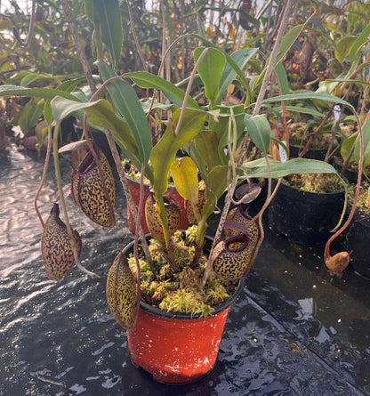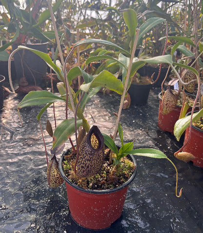 Die hier angebotenen KAnnenpflanzen stammen vom gezeigten Klon und zeigen bereits jetzt eine beeindruckende Präsenz. Mit zunehmender Reife entwickeln sich noch größere und intensiver gezeichnete Kannen, wodurch diese XL-Exemplare langfristig weiter an Ausdruck gewinnen.